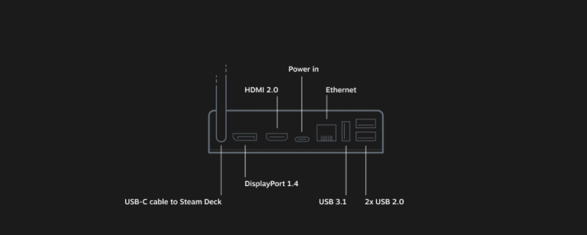 Sold seperately, there is also a Dock you can get for the Steam Deck with following specs.